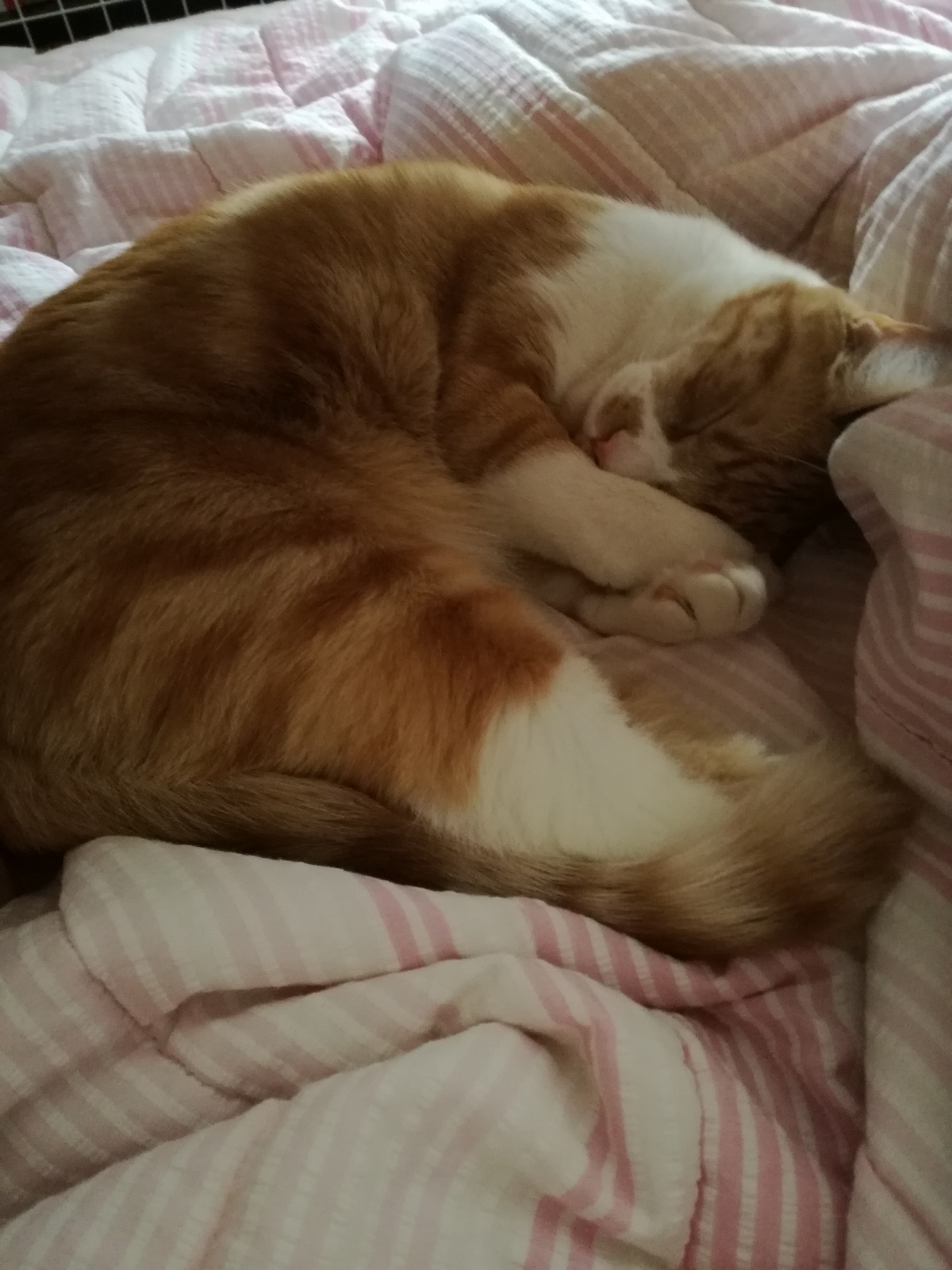 私のお腹の上でうたた寝、猫ゆたんぽ暖かい(о´∀`о)
